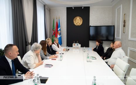 Продолжить чтениеВ Полоцком райисполкоме состоялся официальный прием делегации из города-побратима Фридрихсхафена.С большим желанием приехали в Полоцк председатель общества дружбы «Фрондескрайс» Эльвира Мюллер, председатель рабочей группы по побратимским связям при городской администрации Фридрихсхафена Гюнтер Клек и заместитель председателя нового состава президиума Общества Наталья Бахман.