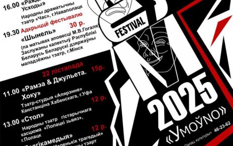 Продолжить чтениеС 21 по 23 ноября в Полоцке пройдет театральный фестиваль «УMOЎNO».