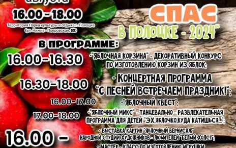 Продолжить чтение19 августа на территории Полоцкого городского парка культуры и отдыха с 16.00 до 18.00 пройдет экологический праздник-фест «Яблочный Спас в Полоцке-2024».