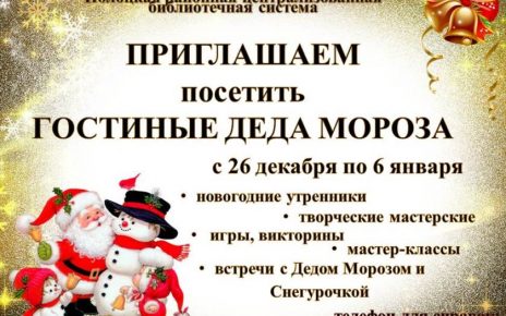 Продолжить чтениеПолоцкие библиотеки приглашают жителей и гостей города и района посетить гостиные Деда Мороза, которые по традиции откроются с 26 декабря. И будут работать по 6 января включительно, кроме выходных.