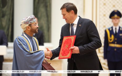 Продолжить чтениеМежправительственное соглашение о взаимной отмене виз заключено между Беларусью и Оманом. Торжественная церемония подписания документа состоялась 6 октября во Дворце Независимости в присутствии лидеров двух стран Александра Лукашенко и Хайсама бен Тарека Аль Саида, передает БЕЛТА.