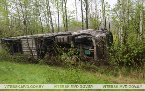 Сообщение о ДТП поступило в Полоцкий РОВД 20 мая в районе 6 утра. По дороге из Полоцка в Витебск съехал в кювет и перевернулся большегруз. За рулём Volvo находился 26-летний житель Могилевской области. Он вез из Литвы груз швейцарского шоколада общей массой 28 тонн.
