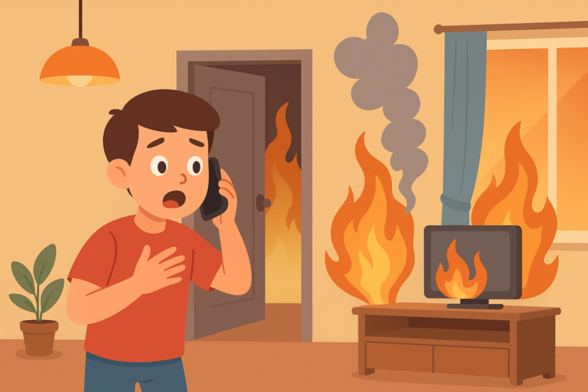 Необходимо немедленно вызвать спасателей, сообщив точный адрес, объект пожара и встретить подразделения МЧС. Говорите по телефону четко, не торопитесь.