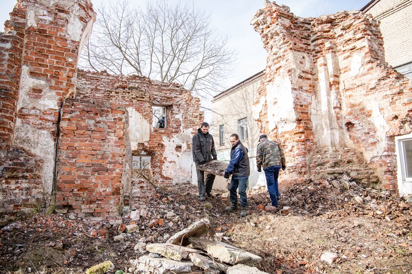 В рамках месячника по наведению порядка, объявленного райисполкомом, специалисты КУП «СГКО «Ритуал» очистили территорию руин от деревьев и кустарников. А представители трудового коллектива БШ №3 на республиканском субботнике убрали мусор и сухую траву.