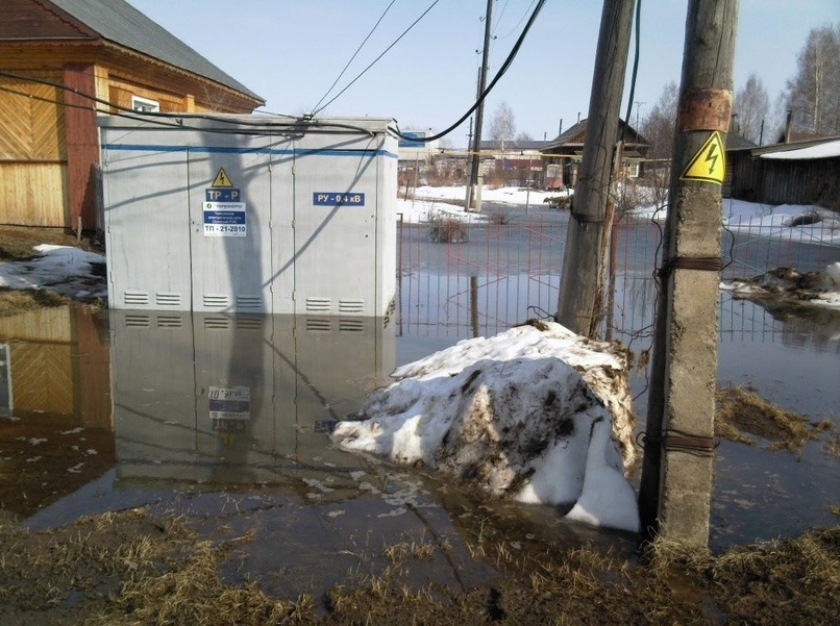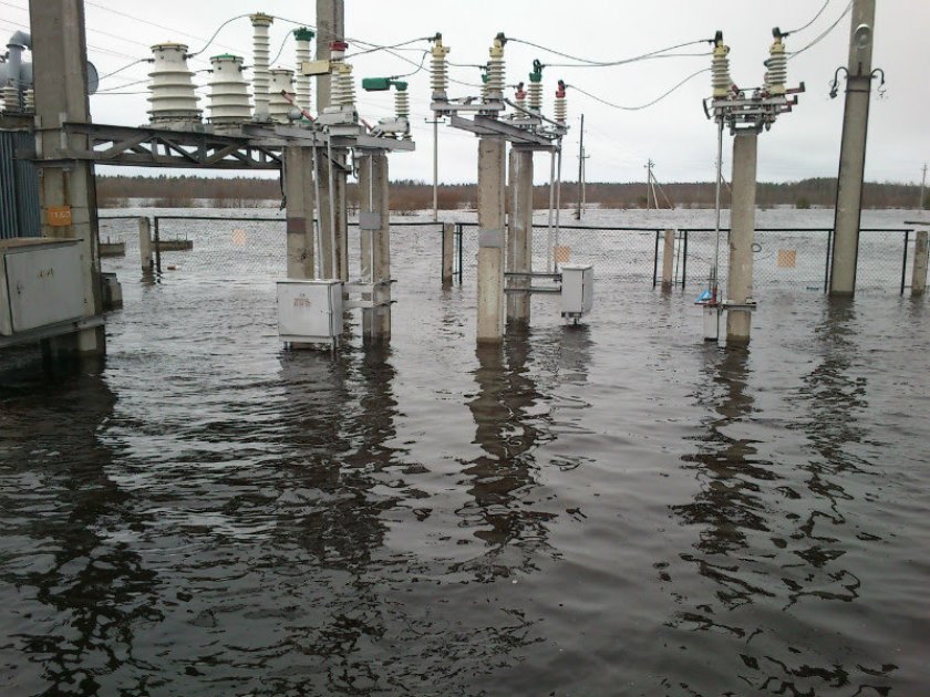 Во время активного таяния снега в весенний период возможно значительное увеличение уровня воды в водоемах и реках, которое приводит к подтоплению береговой линии. В связи с этим, могут возникнуть различные повреждения электрооборудования, находящегося в зоне возможного подтопления. При подъеме паводковых вод, на участках по которым проходят воздушные линии электропередачи, возможно временное снижение безопасного расстояния до этих линий и увеличивается вероятность поражения электрическим током.