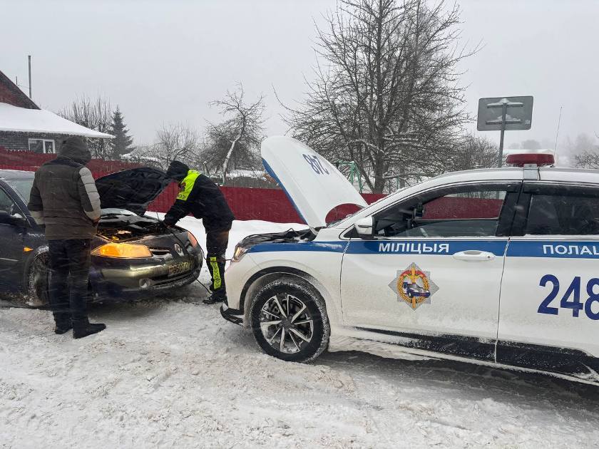 Фотофакт: сотрудники отдела ГАИ Полоцкого РОВД оказывают помощь автомобилистам