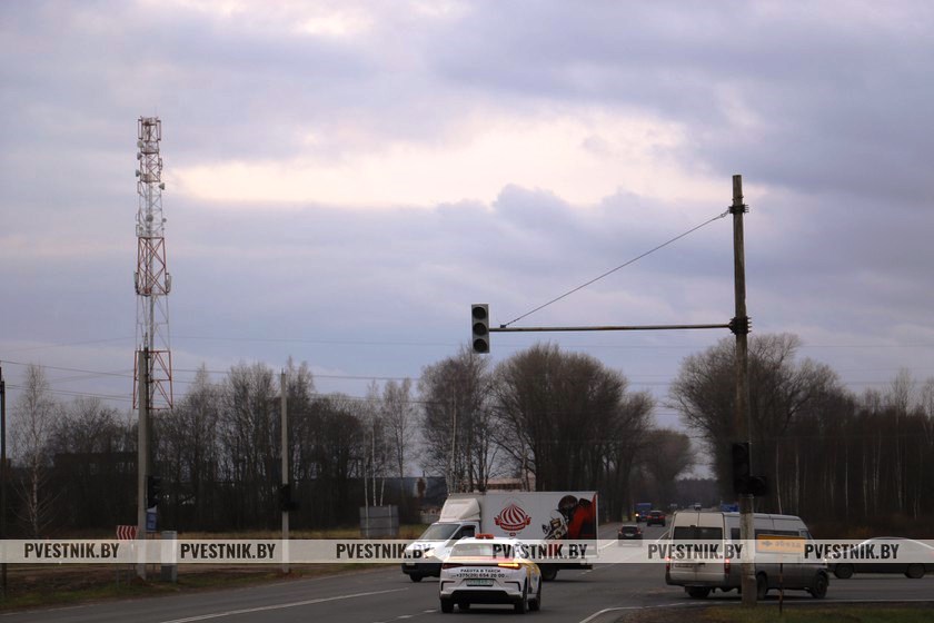 Фотофакт: В связи с реконструкцией участка дороги Н-17297, подъезда к Новополоцку №1 через д.Экимань на объездном участке установили светофоры на перекрестке дорог Р 45 и Н 16303 («хлебозаводская»).