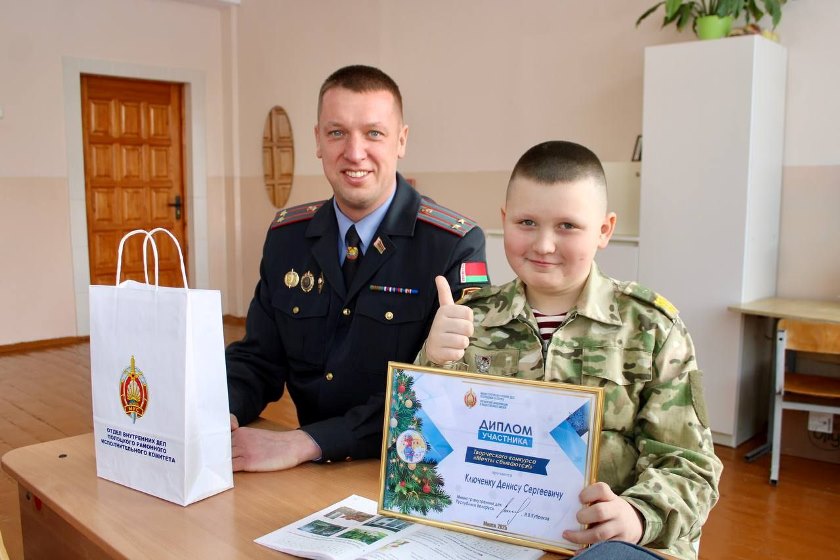 Первых поздравили брата и сестру Ключенок из СШ №8 – 15-летнюю Викторию и 9-летнего Дениса. Они уже не новички в этом конкурсе, и в этот раз их творчество было представлено в формате видеообращений к Министру внутренних дел, генерал-лейтенанту милиции Ивану Кубракову. Виктория поделилась своим стремлением стать оперуполномоченным уголовного розыска, а Денис мечтает о карьере командира отряда милиции особого назначения.
