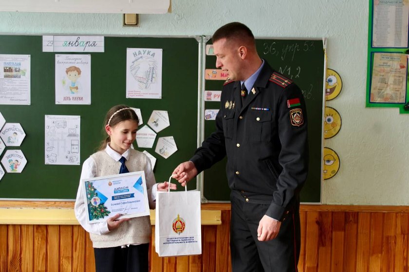 Заместитель начальника Полоцкого РОВД по идеологической работе и кадровому обеспечению, подполковник милиции Дмитрий Ермаков, лично посетил школы, чтобы поздравить ребят с заслуженными наградами.