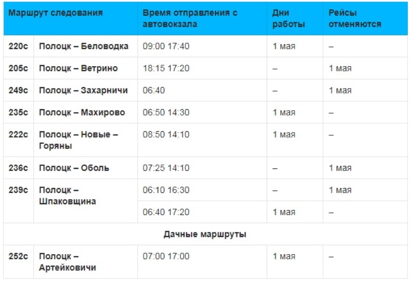 01.05.2024 автобусы на пригородных и междугородных маршрутах будут выполнять рейсы по расписанию среды со следующими изменениями:– пригородные маршруты: