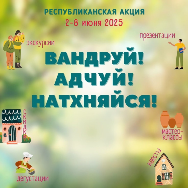 Со 2 по 8 июня 2025 года в г.Полоцке и Полоцком районе пройдет республиканская акция «Вандруй. Адчуй. Натхняйся» по популяризации внут­реннего туризма. В эти дни все желающие могут побыть туристами, открыв для себя красоту родного края.