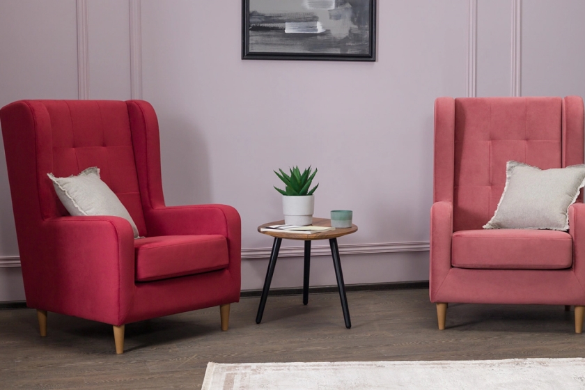 Создать единый стиль в интерьере можно, используя лаконичные мягкие кресла. Они могут повторять стиль дивана или стать ярким акцентом в комнате.