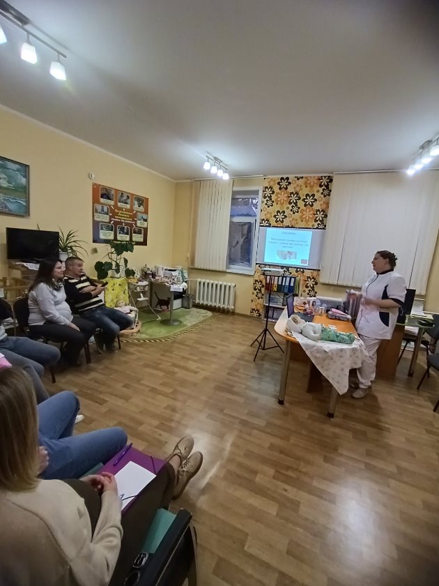 На базе кабинета здорового ребенка детской поликлиники регулярно проходят встречи специалистов с молодыми родителями на ежемесячных интерактивных занятиях «Наша беременность».