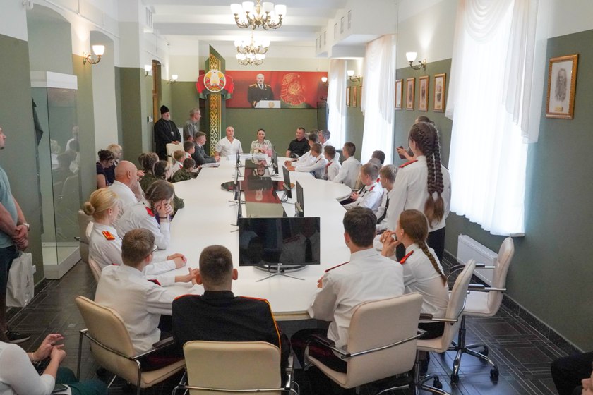 На территории Полоцкого кадетского училища гостей приветствовали председатель Полоцкого райисполкома Василий Шилов, а директор ПКУ Станислав Красовский познакомил с историей кадетского корпуса, провел экскурсию.