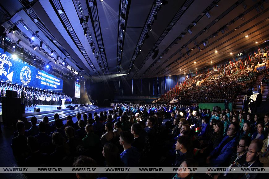 Президент Беларуси Александр Лукашенко 13 декабря вручил переходящее знамя лучшему студотряду 2024 года — строительному отряду «Зодчие» имени П. И. Блохина. Глава государства передал знамя во время торжественной церемонии закрытия третьего трудового семестра 2024 года на Всебелорусском слете студенческих отрядов, передает корреспондент БЕЛТА.