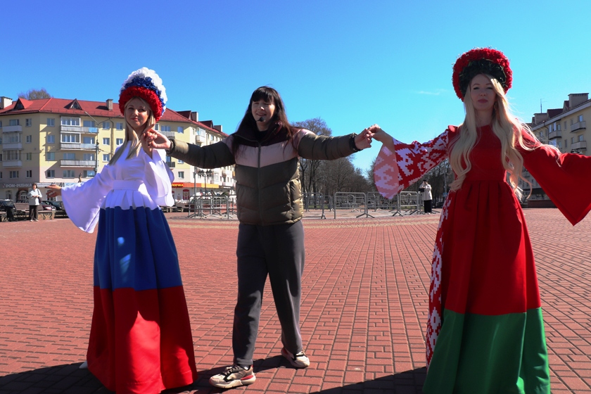 Вероника Казак, ПУ «Полоцкгаз»: «Впервые принимаю участие в подобной акции, радует, что участников много. Очень здорово, что мы имеем возможность собраться с единомышленниками и поддержать дружбу Беларуси и России, приняв участие во флэшмобе, который всех нас объединяет!»