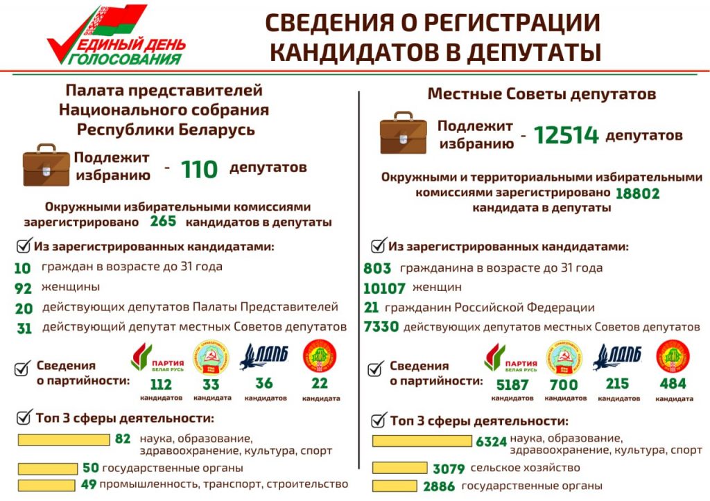 На 110 депутатских мест в Палате представителей будут претендовать 265 кандидатов в депутаты. Такую информацию приводит телеграм-канал ЦИК Беларуси.