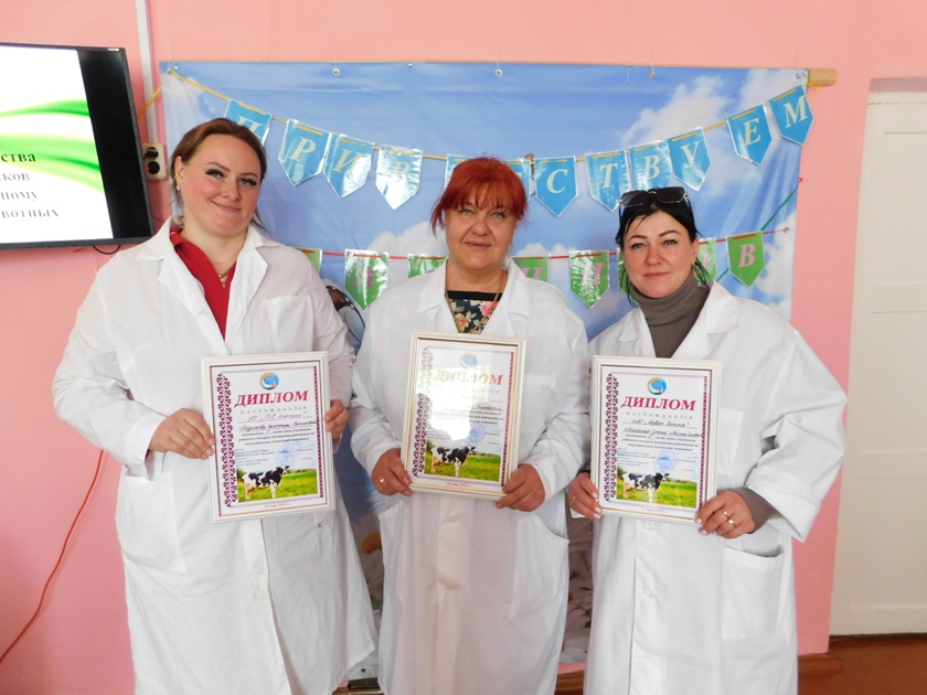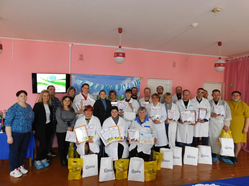 Лидер областного отраслевого профсоюза Татьяна Диканова наградила призами нескольких участников. В их числе Татьяна Борода из УП «Горяны-Агро» — самый опытный техник-осеменатор, и Илья Короткевич из филиала «Клястицы-Агро» — самый молодой конкурсант.