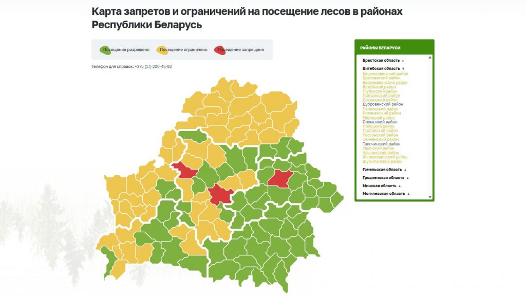 Интерактивная карта на портале Министерства лесного хозяйства обновляется в зависимости от изменения ситуации. Перед походом в лес необходимо ознакомиться с актуальной информацией.