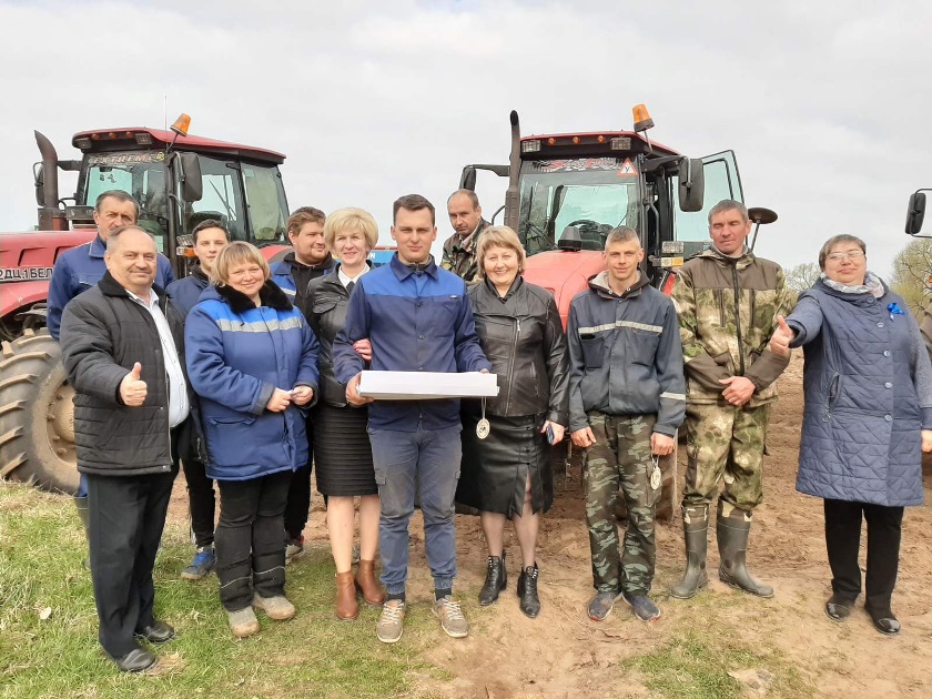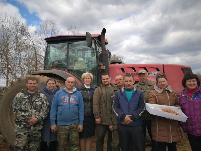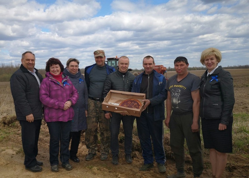 В праздничные дни к механизаторам, занятым на весенне-полевых работах приехали представители профсоюза во главе с председателями РОП и райкома АПК Ольгой Захаренко и Александром Доброславским. Ранним утром профсоюзные активисты вместе с руководителями сельхозпредприятий прямо на пашне поздравляли хлеборобов, вручали им пироги, торты и сувениры с эмблемой ФПБ АПК. Поздравительный десант побывал во всех хозяйствах Полоцкого района. Принимали его с радостью, благодарили за внимание и, проводив гостей, с воодушевлением и новыми силами продолжали работу.