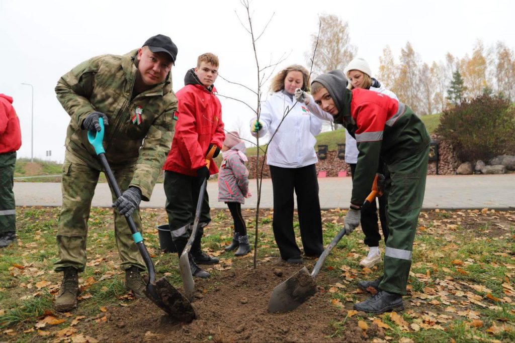 На территории мемориального комплекса в Полоцком районе высадили саженцы деревьев