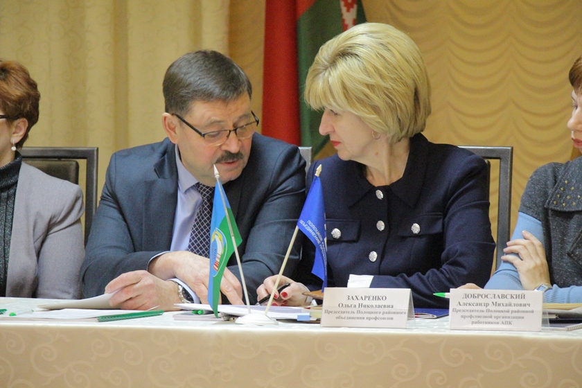 В заседание приняли участие Ольга Захаренко, председатель Полоцкого районного объединения профсоюзов, Александр Доброславский, председатель Полоцкого райкома профсоюза работников агропромышленного комплекса.