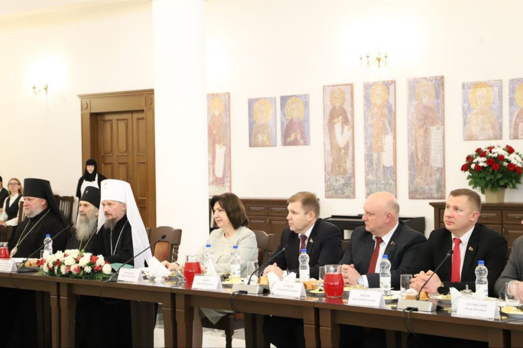 Сегодня на базе Спасо-Евфросиниевского женского монастыря проходит встреча с председателем Совета Республики Натальей Кочановой и Митрополитом Минским и Заславским Вениамином, Патриаршим Экзархом всея Беларуси.