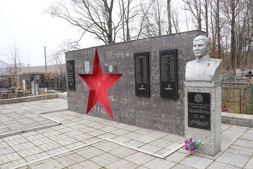 На этом же кладбище покоится еще один Герой Советского Союза — гвардии старшина Изгутты Айтыков. Уроженец Казахстана, он участвовал в освобождении Полоцка. Погиб спустя несколько недель — уже во время боев за освобождение Литвы.