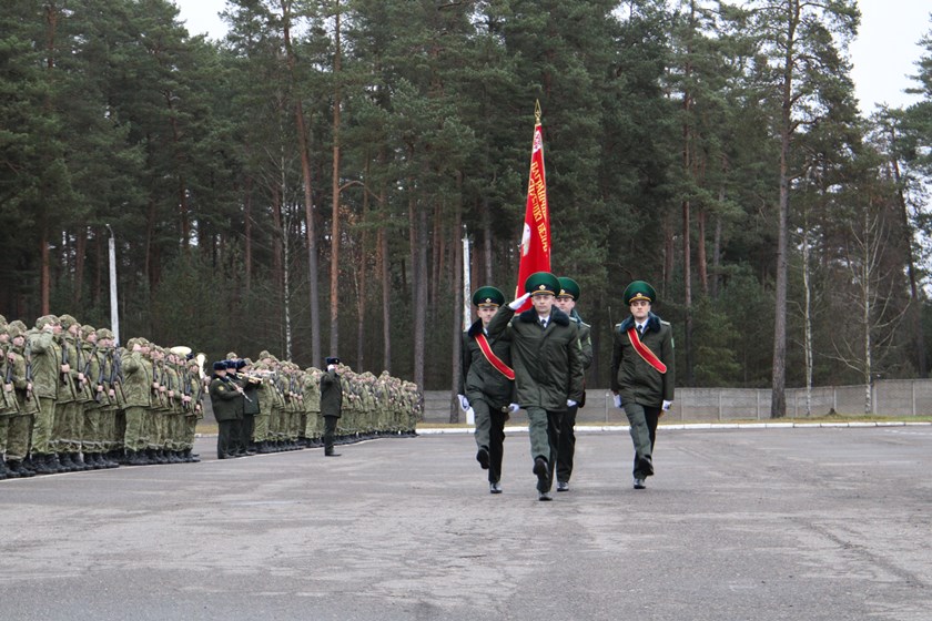 Вместе с вручением оружия курсанты ознакомились с Боевым знаменем части. Присутствующие узнали историю возникновения боевых знамен как атрибута каждого воинского формирования. В мероприятии приняли участие командование пограничного отряда, председатель ветеранской организации Полоцкого пограничного отряда, священнослужитель православной церкви.