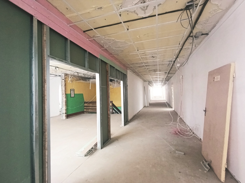 Во всех корпусах установлены окна, выполнены стяжки пола в кабинетах, оштукатурены стены. Как говорится, «черновая» отделка кабинетов завершена, в скором времени начнется «чистовая» покраска.