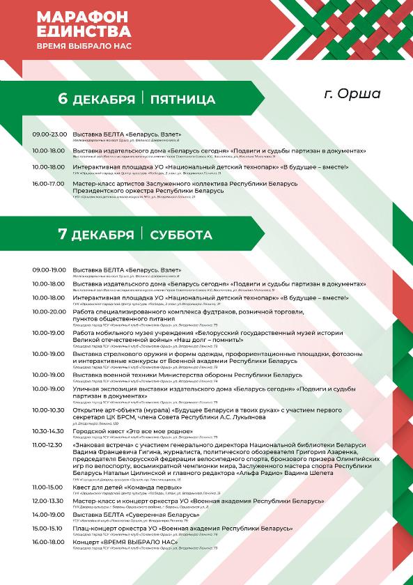 Опубликована афиша мероприятий «Марафона единства» в Орше