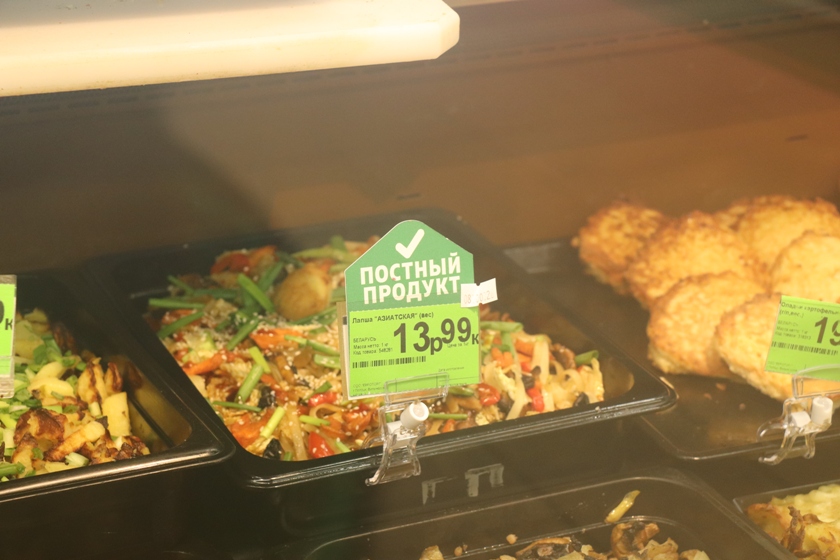 Одно из главных преимуществ крупных торговых объектов — собственная кулинария. Здесь можно приобрести уже готовые постные блюда. Приятный бонус: в некоторых магазинах такие блюда специально отмечены, что значительно упрощает выбор.