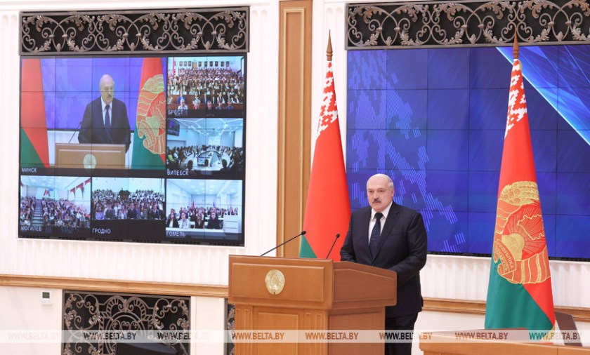 Президент Беларуси Александр Лукашенко в День знаний встретился со студентами вузов и учащимися учреждений общего среднего и среднего специального образования. Открытый урок «Историческая память — дорога в будущее» глава государства решил провести во Дворце Независимости.