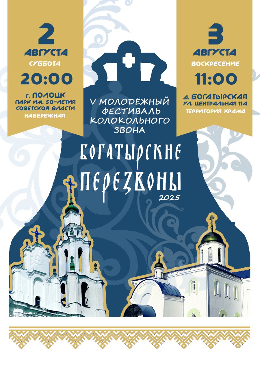 Продолжить чтениеВ Полоцком районе, 2-3 августа, в V раз пройдет молодежный фестиваль колокольного звона «Богатырские перезвоны».