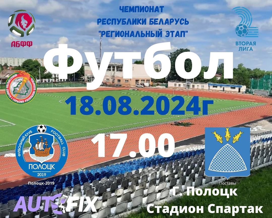 Продолжить чтение18 августа в 17.00 на стадионе «Спартак» в Полоцке состоится очередная игра регионального этапа Чемпионата Республики Беларусь по футболу Второй лиги.
