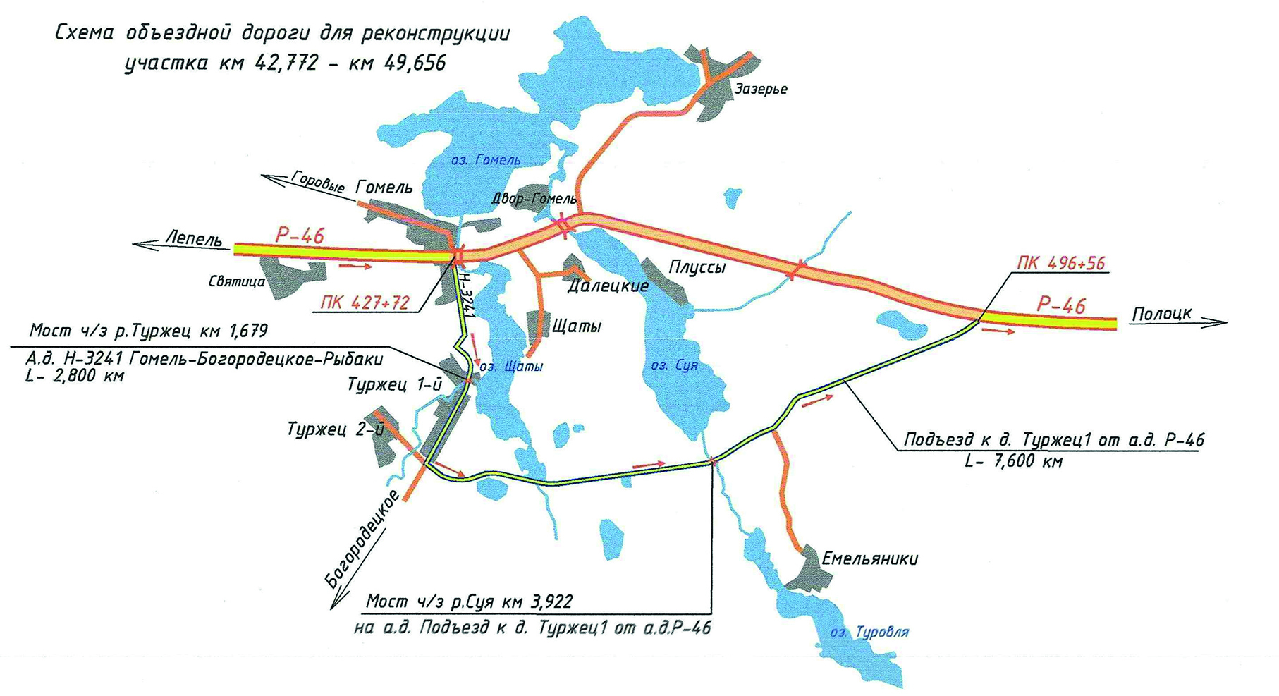 В связи с масштабной реконструкцией автомобильной дороги Р46 Лепель — Полоцк — граница Российской Федерации (Юховичи) на участке протяженностью около 7 км (с 42,772 по 49,656 км) закрытие движения запланировано на 20 ноября.