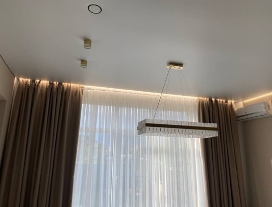 По отзывам клиентов, именно спальня — первое место, куда заказывают тканевые потолки с карнизными нишами. Многие отмечают улучшение сна, более мягкое освещение и ощущение «выровненности» интерьера. Устанавливают туда и потолочные светильники, но в основном — точечный или закарнизный свет.
