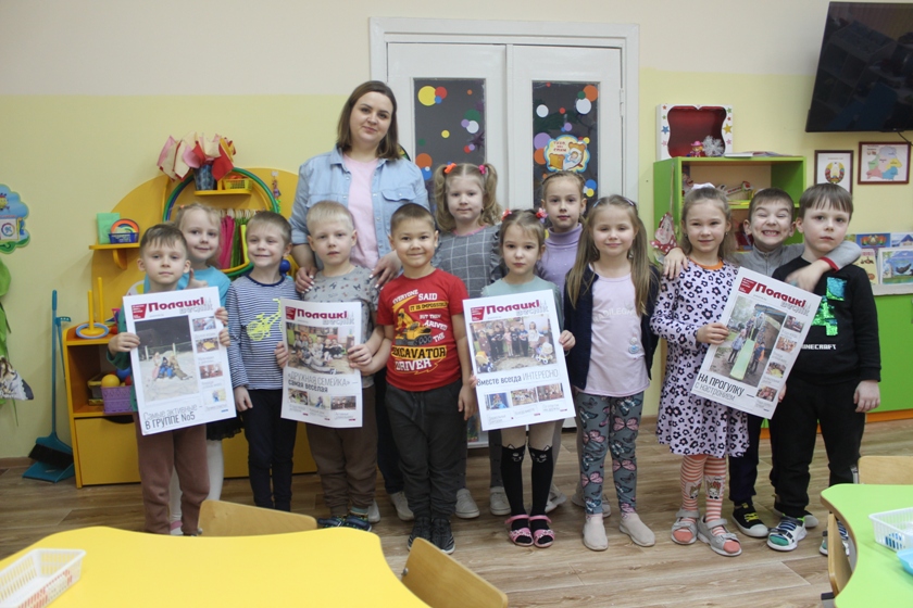 Какая же публикация без иллюстрации! На занятии детишки освоили и съемку на фотоаппарат и даже потренировались делать видеоопрос. А завершилась встреча на творческой ноте — ребята «сверстали» 4 первые полосы газеты «Полацкі веснік». И главными героями публикаций, конечно, стали воспитанники детского сада.