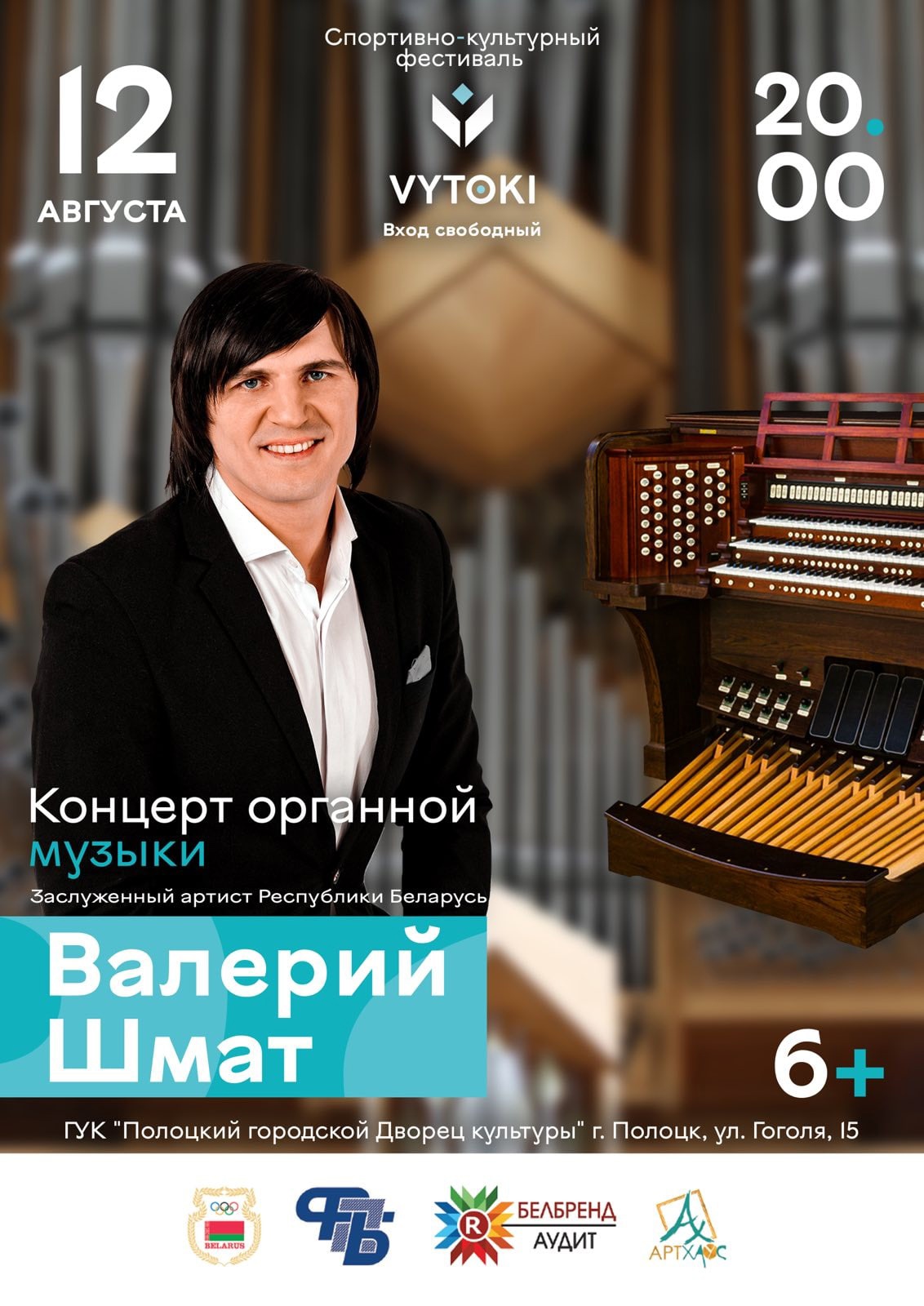 На сцене Полоцкого городского Дворца кульутры 12 августа в рамках культурно-спортивного фестиваля «Вытокi. Крок да Алiмпу» пройдёт концерт органной музыки.