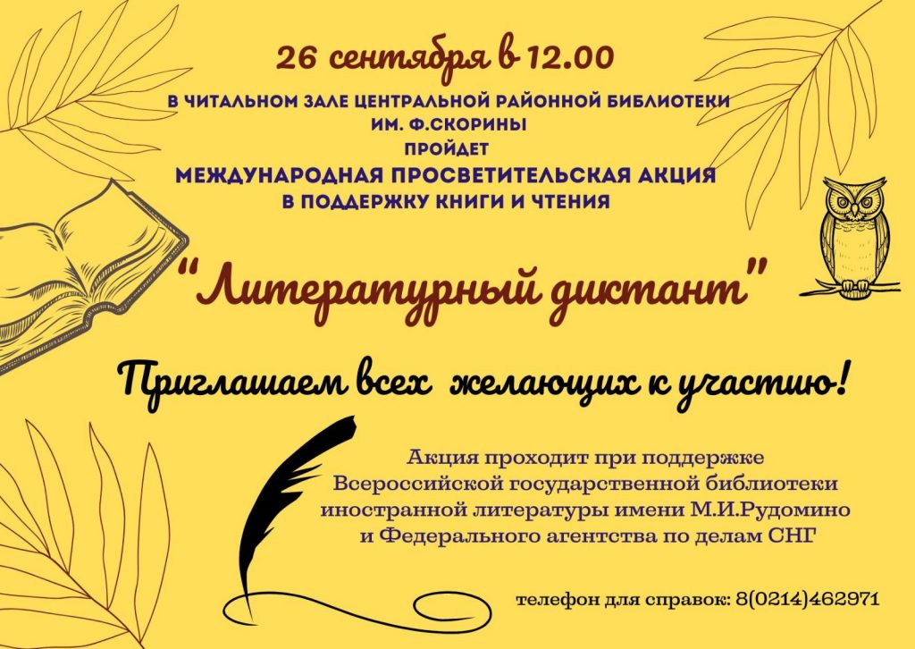 26 сентября жители Полотчины могут присоединиться к международной просветительской акции в поддержку книги и чтения «Литературный диктант».