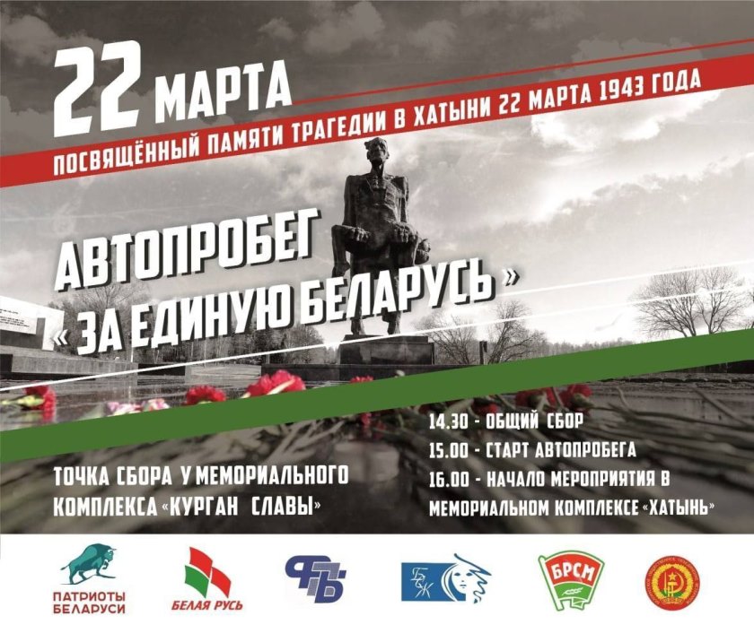 22 марта состоится масштабный республиканский автопробег «За Единую Беларусь», посвящённый дню памяти Хатынской трагедии!