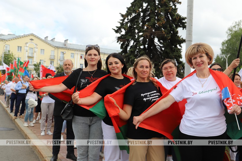 На мероприятие автопробегами приехали делегации всех районов Витебской области. Полотчиину представляло более 100 человек, среди них депутаты, представители организаций, учреждений, предприятий, силовых структур, общественных объединений и политических структур, молодежь. В приподнятом настроении, с флагами они прошлись праздничным шествием по улицам Витебска к главной сцене города.