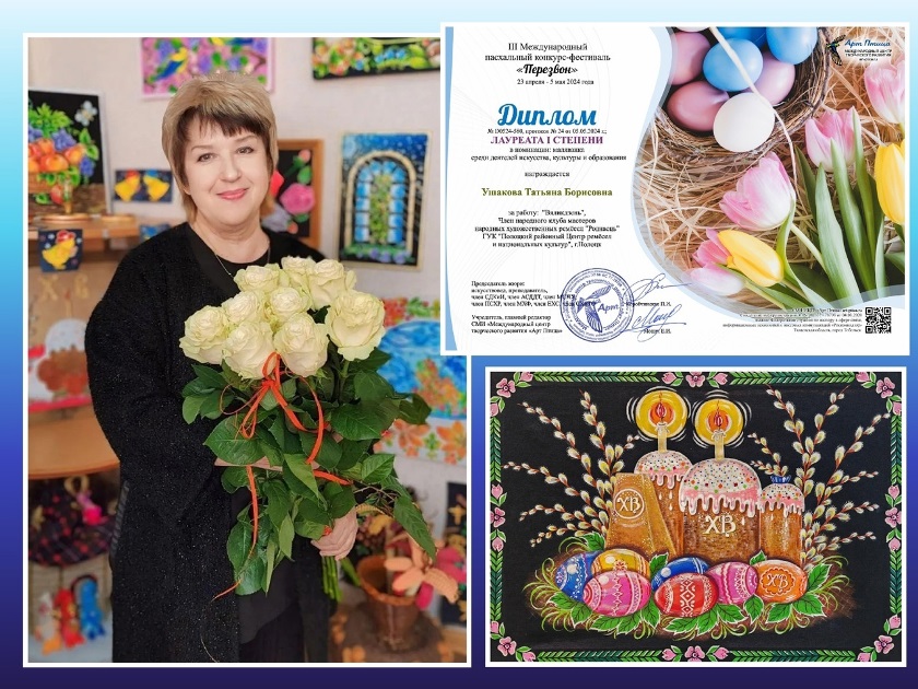Член народного клуба мастеров народных художественных ремесел «Роднасць» Полоцкого районного Центра ремесел и национальных культур Татьяна Ушакова стала лауреатом I степени в номинации «маляванка среди деятелей искусств, культуры и образования».