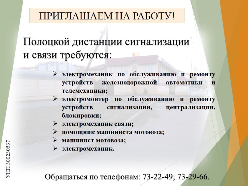 Полоцкая дистанция сигнализации и связи приглашает на работу