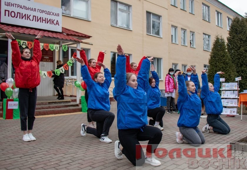 В Полоцке работники центральной городской поликлиники совместно с ОО «БРСМ», РОО «Белая Русь» и Полоцким ГРОЧС организовали мини-праздник в честь Всемирного дня здоровья. Флешмоб, интерактивные площадки, беспроигрышная лотерея, ожившие вредные привычки… Это не все сюрпризы, которые ждали случайных прохожих и посетителей поликлиники.