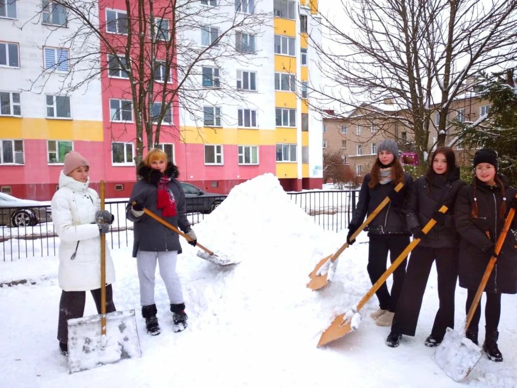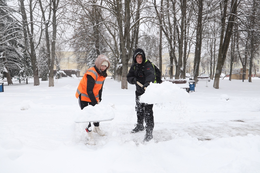 Активисты Полоцкой РО ОО «БРСМ» помогают расчистить улицы города от снега.