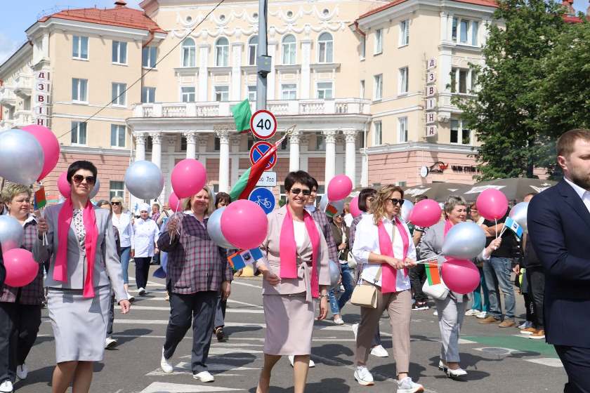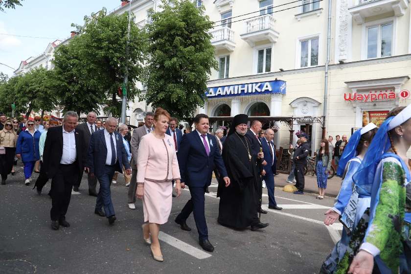 Представители местной власти, общественных объединений, работники предприятий, организаций и учреждений, спортсмены и деятеди культуры – сотни полочан прошли колонной по проспекту Франциска Скорины к Центру культуры «Полоцк».
