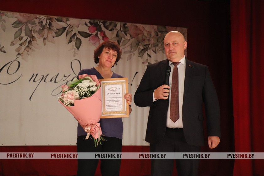 Дмитрий Владимирович поздравил с профессиональным праздником педагогический коллектив школы и вручил подарочный сертификат на сумму 20.000 рублей на пополнение материально-технической базы учреждения образования. Отдельные слова признательности Д.В.Демидов адресовал своему классному руководителю Тамаре Константиновне Орловской.