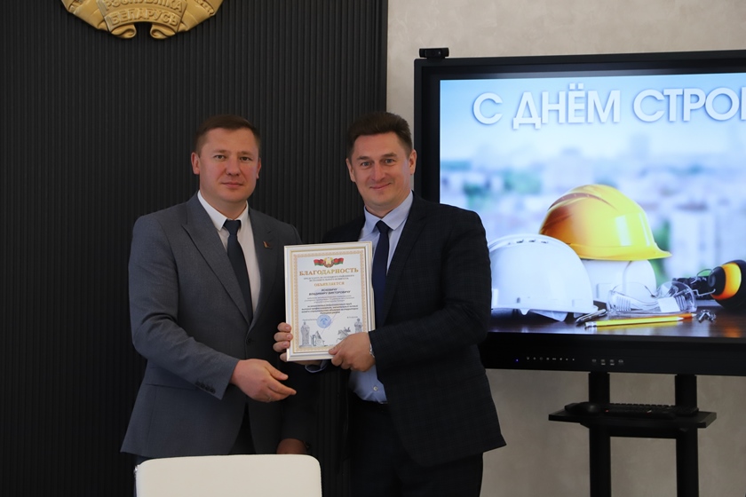 Председатель Полоцкого райисполкома Василий Шилов в канун профессионального праздника поздравил лучших представителей строительной отрасли Полоцкого района.