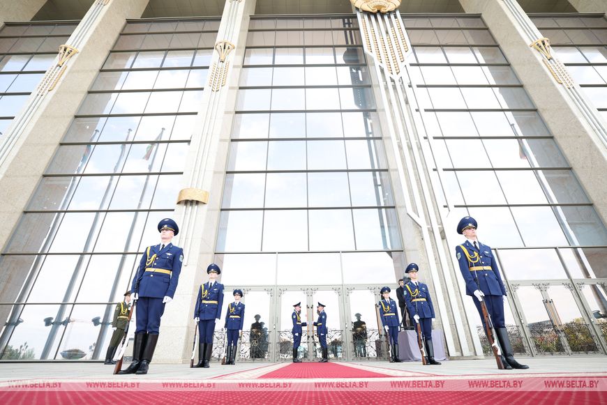 Президент Зимбабве Эммерсон Мнангагва прибыл во Дворец Независимости на переговоры с Президентом Беларуси Александром Лукашенко, передает корреспондент БЕЛТА.